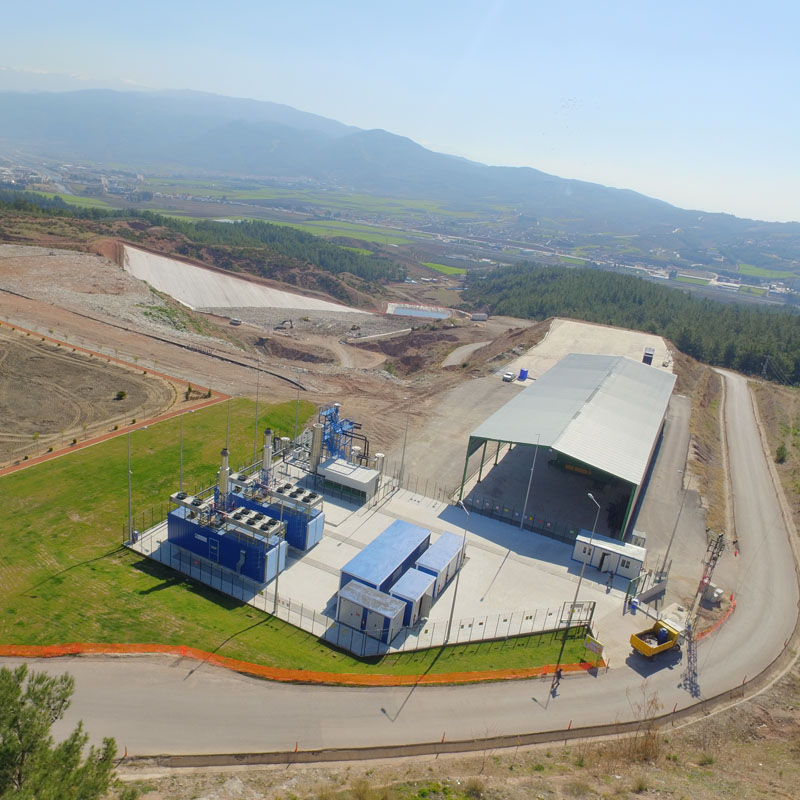 Katı atıkların olumsuz çevresel etkilerini azaltmak için vahşi depolama alanlarından vazgeçip düzenli depolama alanlarının kurulması gerekmektedir. Katı atık düzenli depolama sahalarında depolanan atıkların, zamanla içeriğindeki oksijeni tüketerek, bu ortamda üreyen anaerobik bakteriler yardımı ile oksijensiz (anaerobik) çürümesi sonucu depo gazı oluşur. Depo gazının yanıcı ve patlayıcı özelliğinin yanında içeriğinde bulunan metan, karbondioksit gazına nispetle 23 kat daha güçlü sera gazı etkisine sahiptir. Depo gazının bu zararlı etkilerinin ortadan kaldırılması için uygun tekniklerle toplanıp bertaraf edilmesi gerekir. Düzenli Depolama sahalarında havasız ortamda oluşan çöp gazından enerji üretimi gerçekleştiren firmamız oluşan gazı yatay ve dikeyde yerleştirilen borulama sistemiyle toplanmakta ve gaz motorlarında elektrik ve ısı enerjisine dönüştürmektedir.